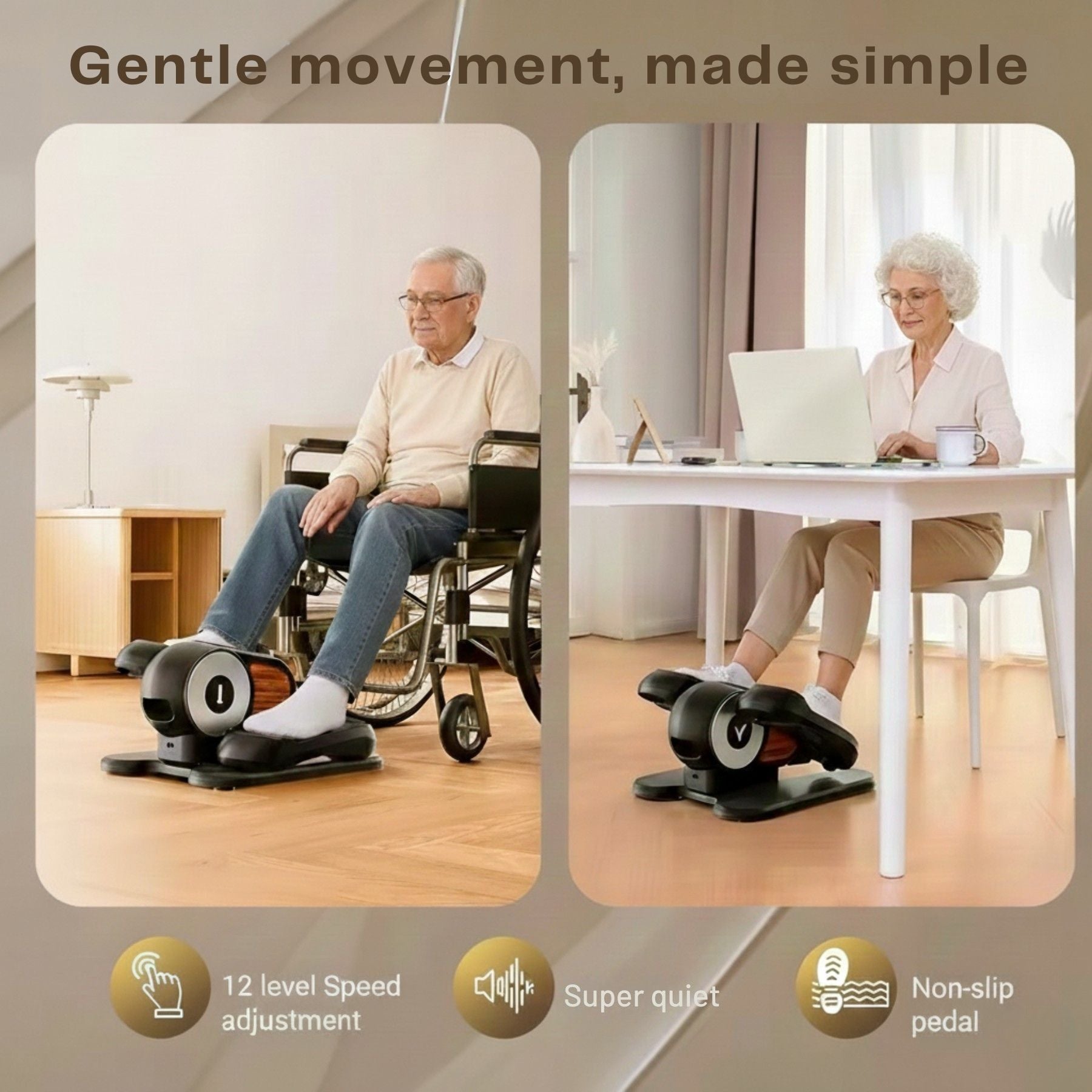 Stay active right from your chair with the TopGlim Mini Elliptical Trainer M. Designed for seniors, it strengthens legs, boosts circulation, massages your feet, and helps reduce stress — all gently, quietly, and safely.